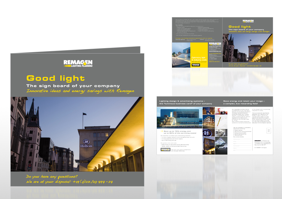 Gestaltung einer 4-seitigen Broschüre, Kunde: Remagen – Ideen für Licht + Raum e.K.