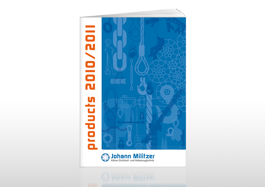 Konzept, Fotografie und Gestaltung eines 96-seitigen Produktkatalogs im Format DIN A4, Ansicht: Titelseite, Kunde: Johann Militzer – Kölner Drahtseil- und Hebezeugtechnik