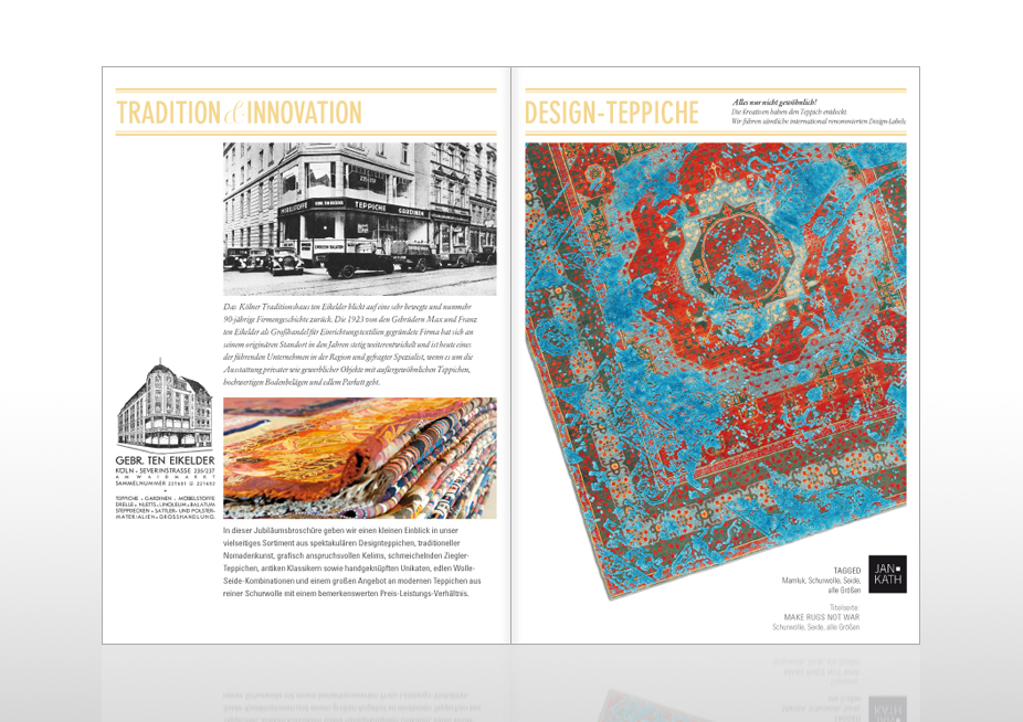 Konzept und Gestaltung einer 12-seitigen Jubiläumsbroschüre, Ansicht: Doppelseite 02/03, Kunde: Bodenkultur Ten Eikelder