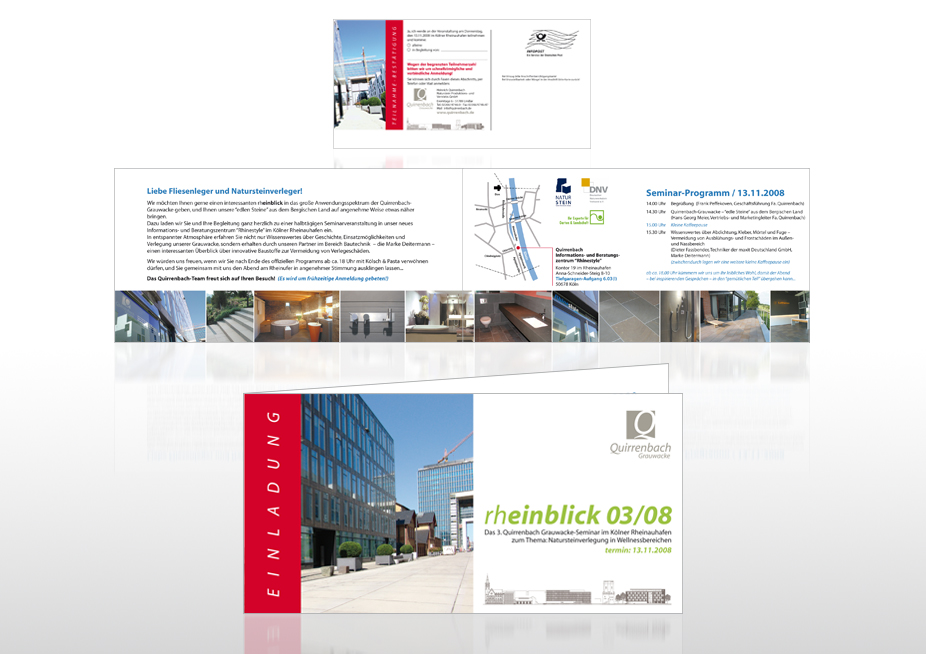 Gestaltung eines 4-seitigen DIN-lang Komplettmailers, Kunde: Quirrenbach – Innovation Naturgestein