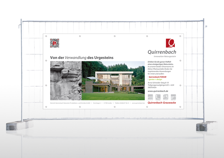 Gestaltung einer Bauzaunplane, Kunde: Quirrenbach – Innovation Naturgestein