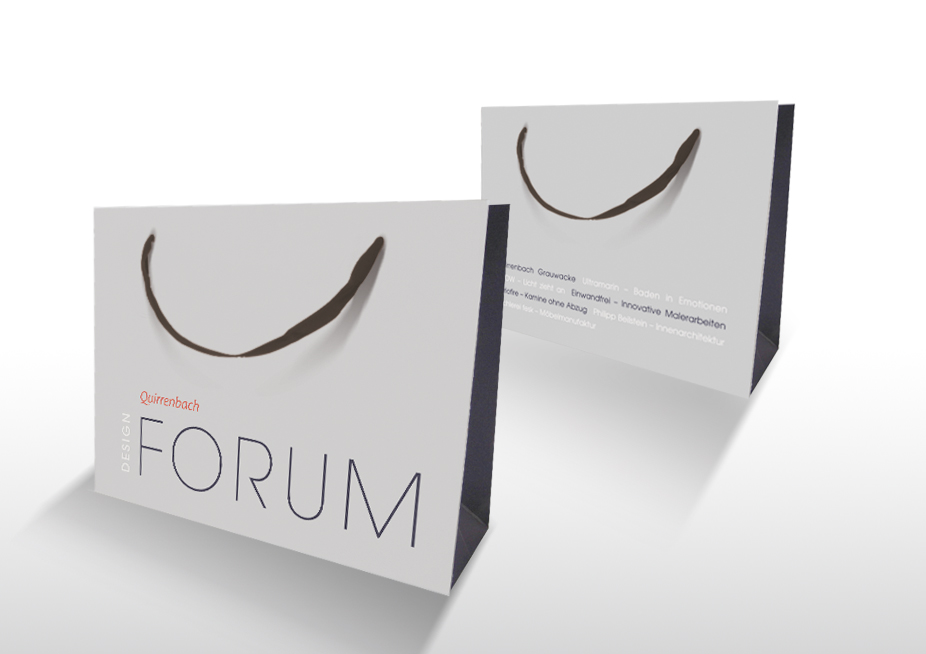 Gestaltung hochwertiger Tragetaschen, Kunde: Quirrenbach-FORUM (Ausstellergemeinschaft aus dem Bereich Interior Design mit Showroom im Kölner Rheinauhafen)