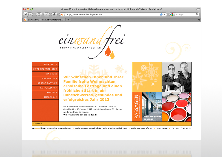 Konzept und Gestaltung des Internetauftritts, Einführung eines Redaktionssystems sowie CMS-Pflege, Ansicht: Startseite, Kunde: Einwandfrei – Innovative Malerarbeiten