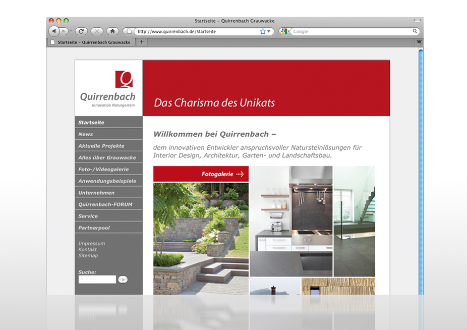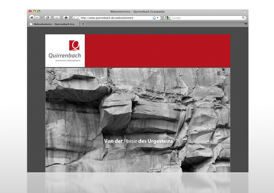 Konzept und Gestaltung des Internetauftritts sowie redaktionelle CMS-Betreuung, Ansicht: Introanimation, Kunde: Quirrenbach – Innovation Naturgestein