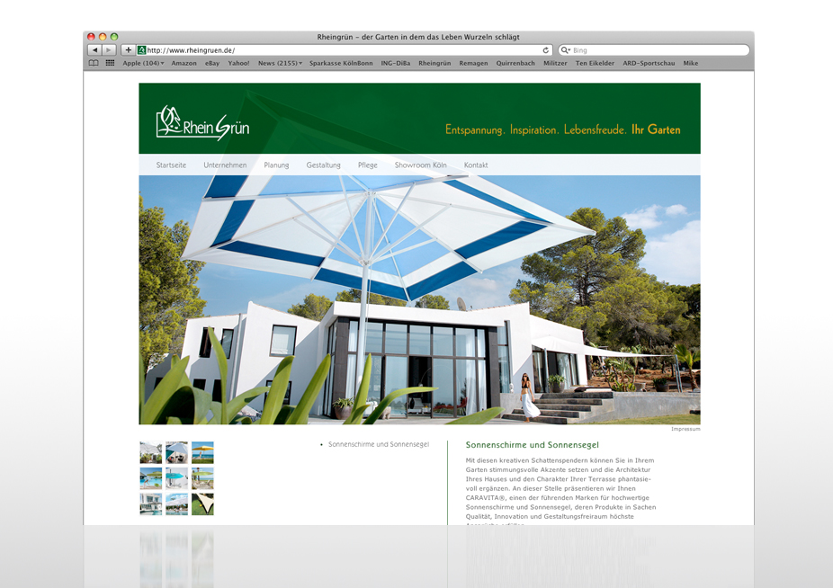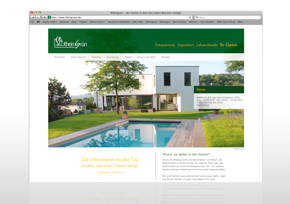 Konzept, Gestaltung und technische Umsetzung des Internetauftritts in ein CMS-System, Ansicht: Startseite, Kunde: RheinGrün