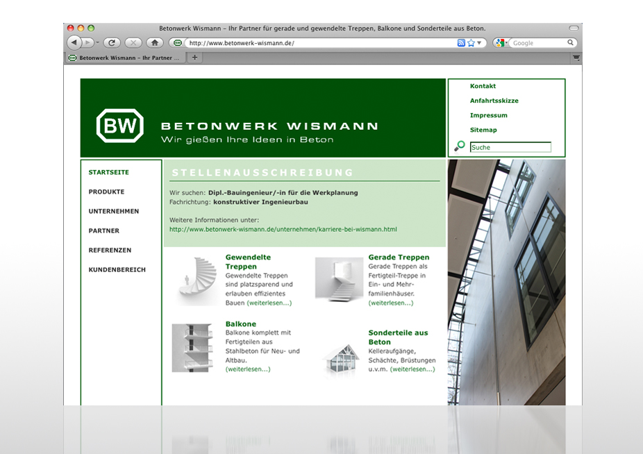 Webdesign, Ansicht: Startseite Betonwerk Wissman, Kunde: MK-Synergie