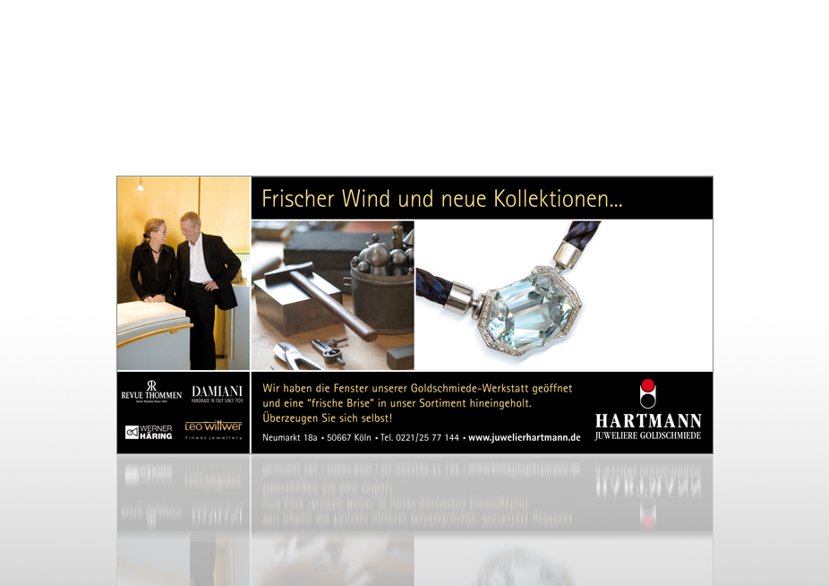Anzeigengestaltung für Kölner Stadtanzeiger, Kunde: Juwelier Hartmann