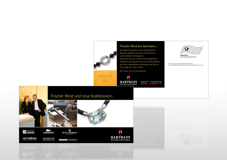Gestaltung einer DIN-lang Postkarte, Kunde: Juwelier Hartmann