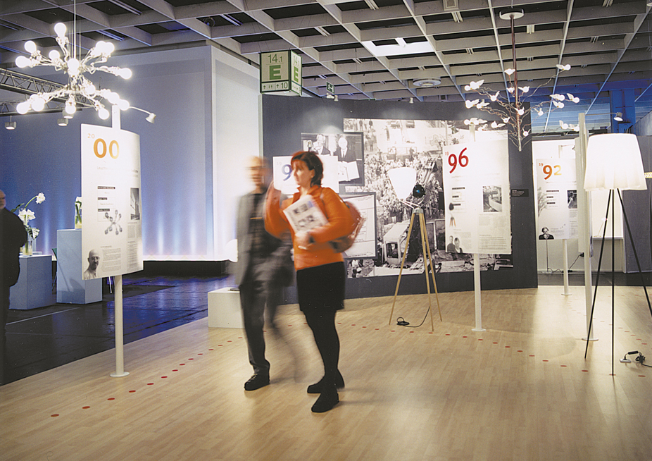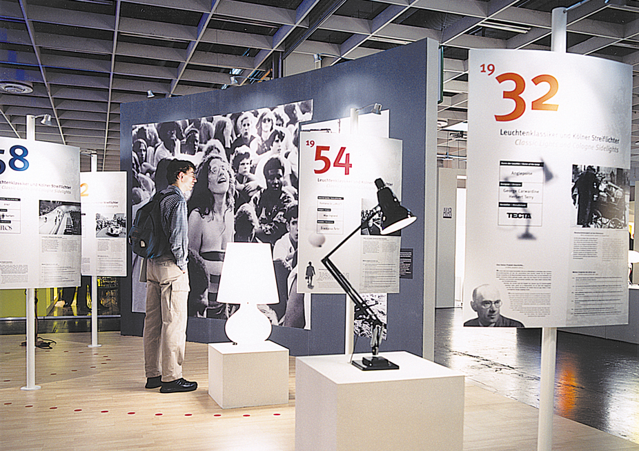 Konzept, Gestaltung und Umsetzung der Ausstellung "Leuchtenklassiker und Kölner Streiflichter" im Rahmen der `Internationalen Möbelmesse Köln´, Gemeinschaftsprojekt mit Fa. Remagen und dem Wienand-Verlag, Kunde: KölnMesse