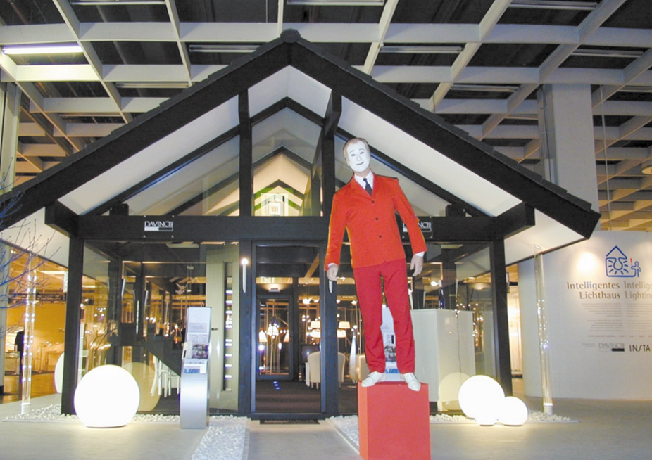 Konzept, Logo-Gestaltung und Inszenierung der Ausstellung "Intelligentes Lichthaus" auf der `Internationalen Möbelmesse Köln´ mit Pantomime Milan Sladek, Gemeinschaftsprojekt mit den Unternehmen `DAVINCI Haus´ und INSTA Elektro GmbH, Kunde: KölnMesse