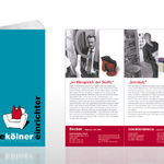 Redaktion, Konzept und Gestaltung einer 20-seitigen DIN-lang Broschüre, Ansicht: Titelseite + exemplarische Doppelseite, Kunde: `Die Kölner Einrichter´